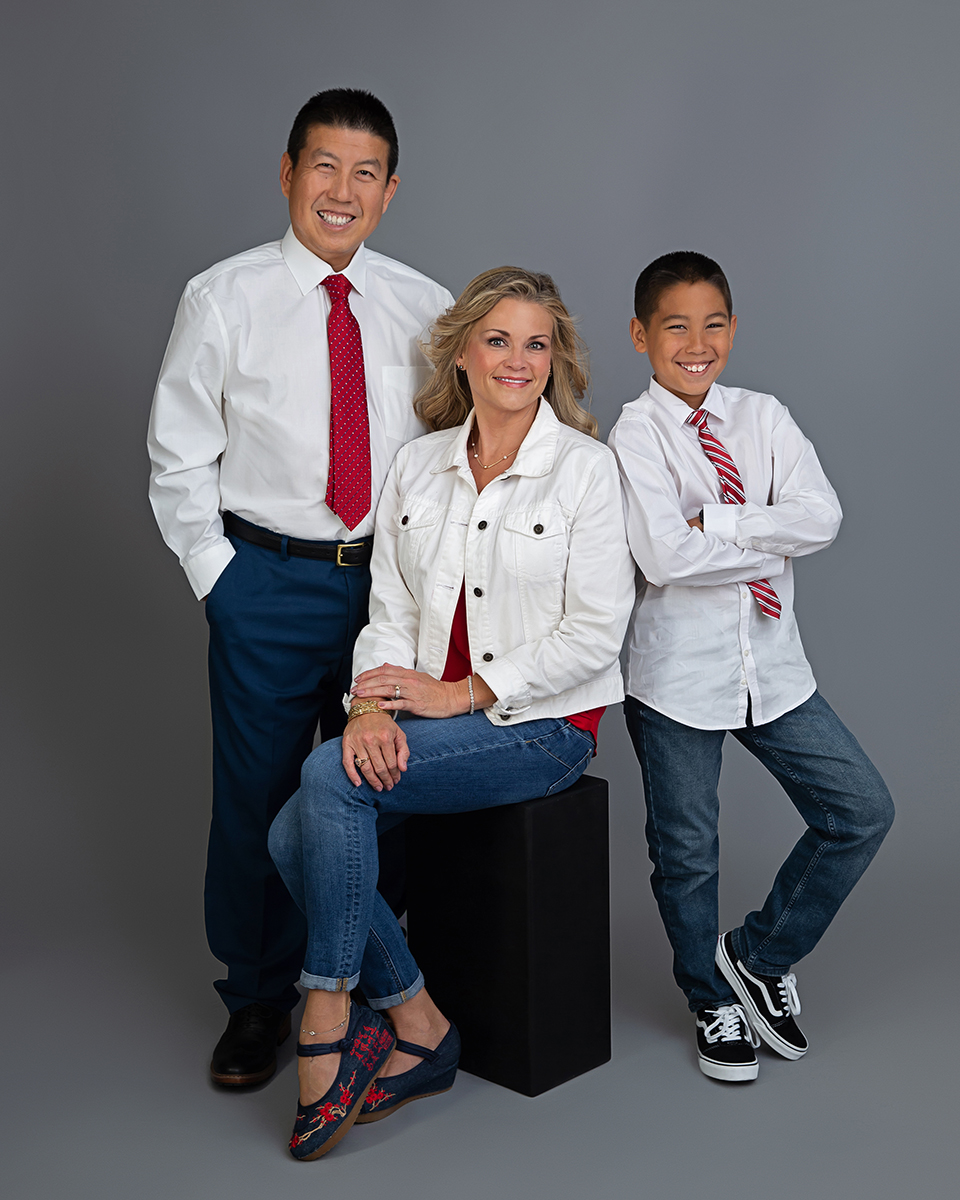 You can choose to have a light or dark background for the studio. For the light background, I recommend off-white, beige, or light hues like baby blues, soft pinks, greens, coral, etc. For the dark background, I recommend black, grey, navy, or jewel tones such as ruby, turquoise, emerald green, etc. You may choose to go as formal as you like, or opt for a more casual look. Formal attire can be anywhere from tuxedos and ball gowns to suits and nice dresses. Casual attire can be button up or collar shirts and jeans to long sleeve shirts, sweaters, and khakis. For outdoor shoots, you will receive an in-person consultation where I will help you with your outfits. Formality should be the same for all individuals being photographed.